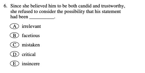 3. Sentence Equivalence: You’ll be presented with a sentence with blanks, and you must choose two words or phrases from the given options that would create sentences with similar meanings when inserted into the blank. You’ll need to answer four sentence equivalence questions.