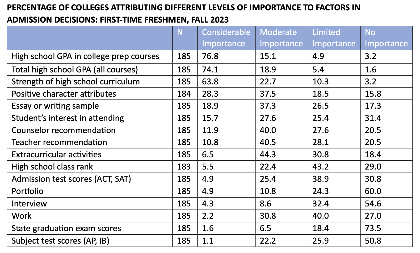 Doing this will pull up a table that indicates how much weight the school places on each part of the application, including the interview. Here’s what I found, for example, by Googling “Wake Forest Common Data Set” and then looked specifically at Section C7: