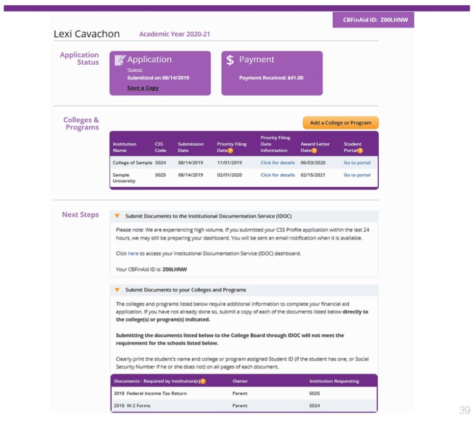 完成所有内容(在此之前列出)后,CSS 主页界面就会出现,你可在此查看申请状态、付款收据、截止日期和大学信息/详细信息。遗憾的是,《财政援助申请CSS表》的费用不可豁免。《财政援助申请CSS表》的费用为 25 美元,需填写并提交给一所大学,然后每增加一份申请需支付 16 美元。