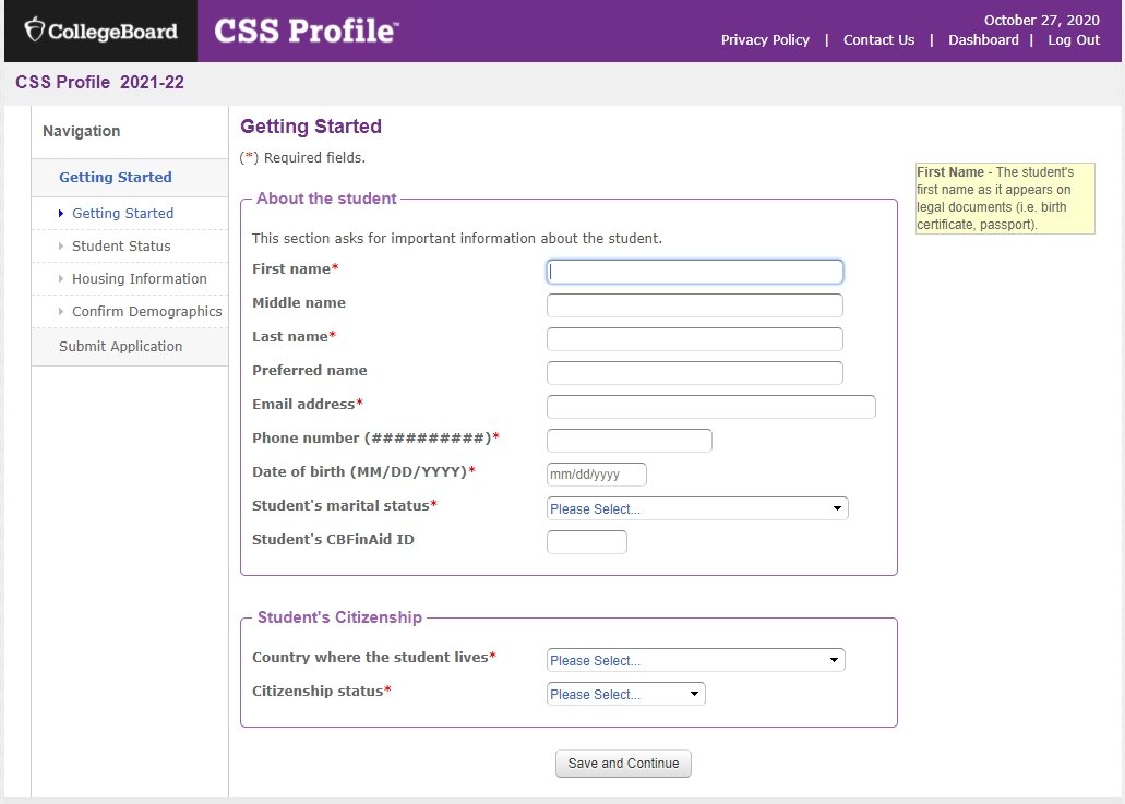 本部分中的问题是关于你的,而不是你的父母/监护人。这些问题对 《财政援助申请CSS表》设置非常重要。这方面的错误可能会影响你的整个申请!