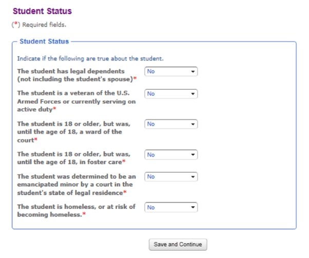 如果你有非监护父母(对学生申请人没有监护权的父母),他们需要单独填写《财政援助申请表》申请,即包含你父母信息的技术“学生帐户”。与学生的《财政援助申请CSS表》申请类似,父母需填写申请表中学生部分的学生信息以及家长部分中每位家长的信息。