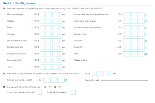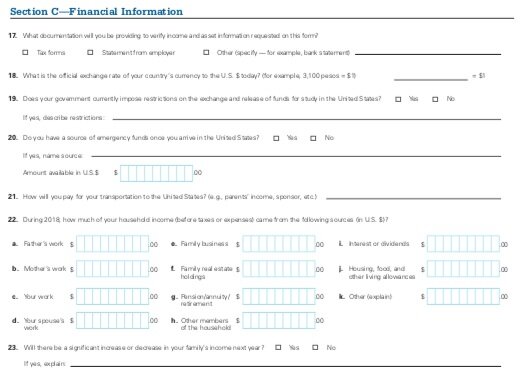 本部分涵盖你家庭的财务信息。请记住,对于 ISFAA,你必须以美元报告相关数据。你需要在此填写你的家庭收到的所有收入。