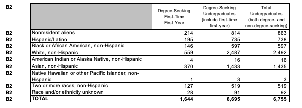 本部分按群组、性别和种族/民族认同等类别细分一般入学情况。如果多样性对你的大学经历很重要,那么这对你来说将是一个有用的部分!
