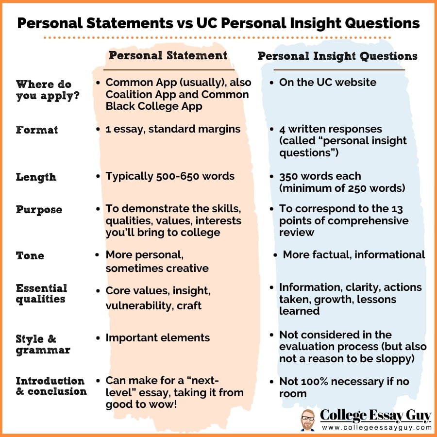 Essential Qualities of a Personal Statement vs. UC Personal Insight Questions