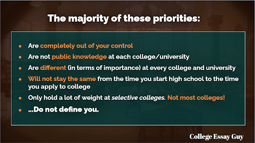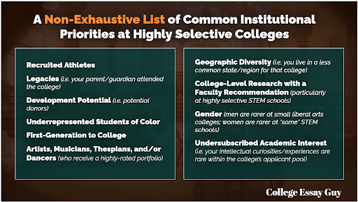 Okay, so many colleges have more applicants and are strategically motivated to admit as few of them as possible to fill their class and maintain their selectivity position in the eyes of the media and the public. How do they decide who to admit?