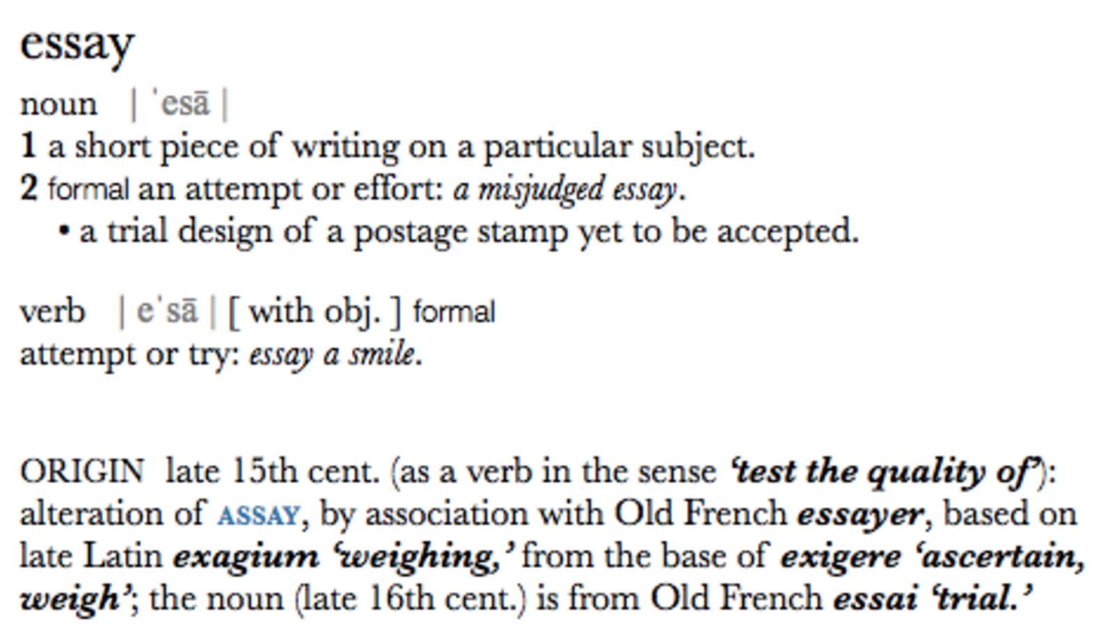 And though my New Oxford American Dictionary tells me the word “essay” simply means “a short piece of writing on a particular subject,” I’ll respect their opinion.
